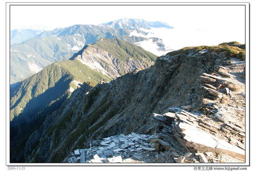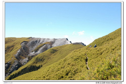 一路胡拍,也為自己的休息找個理由!隊友說如果先前有看到網路上的相片拍出來這段路,他就不敢來了..我說:因為背相機的,到了這段路,都自顧不暇了,誰還有氣力拍啊.能夠拍的時候都嘛是心平氣和的時候!那時的景色當然都是格外怡人!