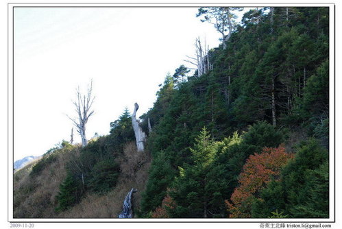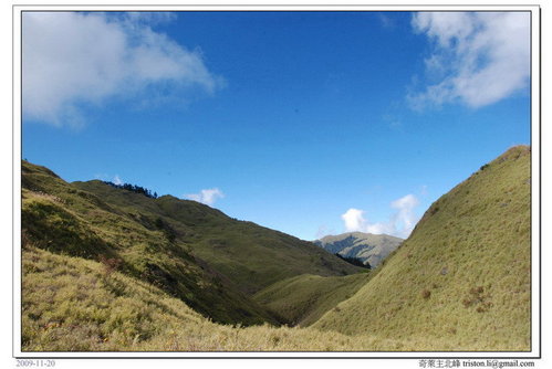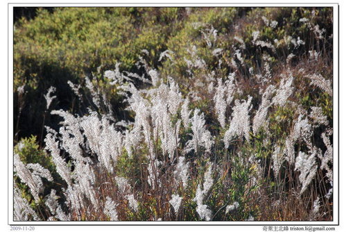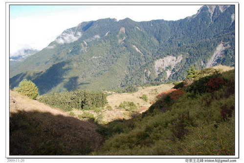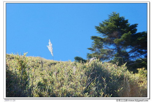 十一月的山坡不像四五月時開滿了高山杜鵑..不過一簇簇的菅芒也是很有風味