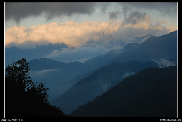天快暗了,夕陽把東邊塔塔加鞍部方向的雲彩映的一片明亮,不過山區的天黑的很快,所以我們要趕緊驅車前往今天的住宿點.
