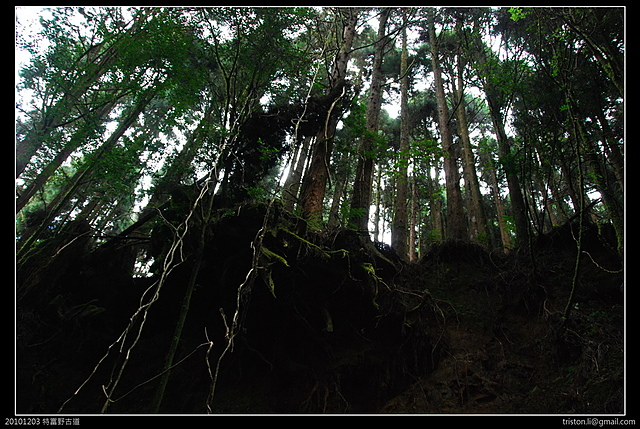 柳杉底部的土石已經因為風災被沖刷掉,但卻仍然用根部牢牢的抓住地面