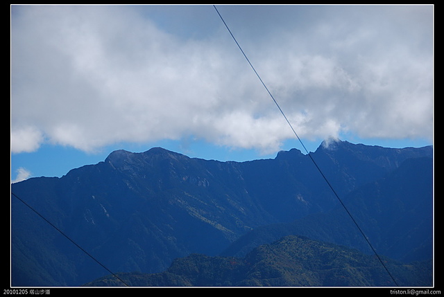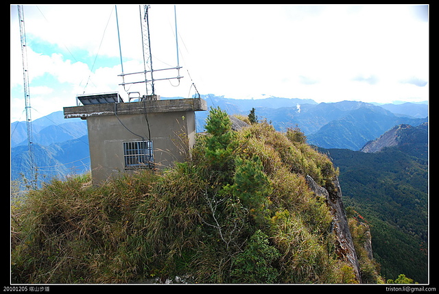 YA!!達陣...往東是玉山連峰,可惜被國家急難救助用的通訊小屋擋住了視線.長官解釋說這是如果發生災難,行動電話都不通時,救難單位用來通訊的中繼站,地位如此重要,當然也就佔據最好的視野了