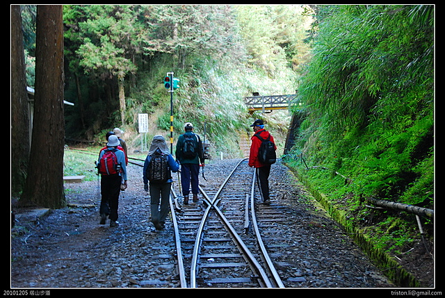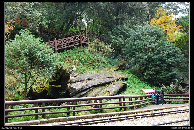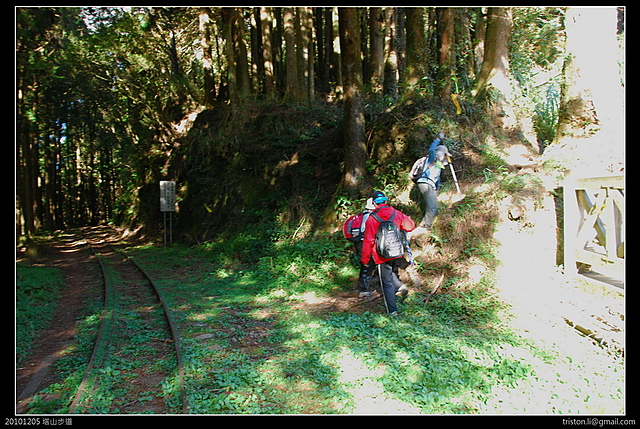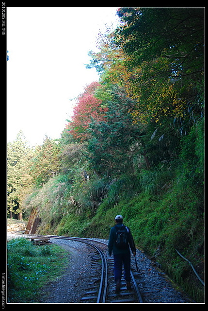 然後也不依照塔山步道行走,我們的路線是沿著眠月祝山線的鐵軌走,然後轉進暫停行駛的眠月線,再切進塔山步道,至少又省了不少起起伏伏的步道路程.