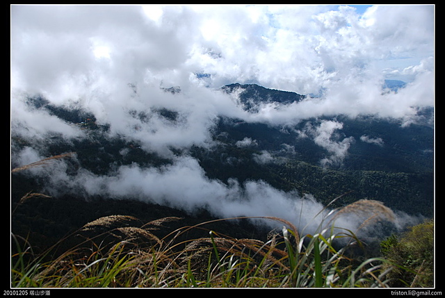 從山坳處順風而上的山嵐就是一道逆勢而上的河流..不停的往山頂流動