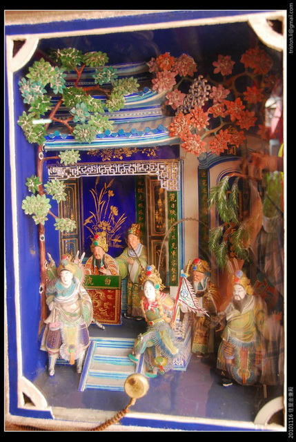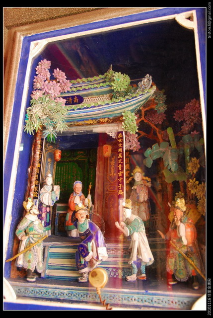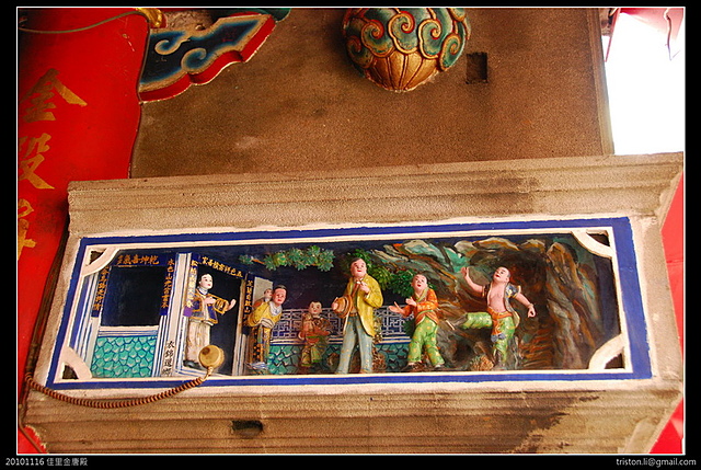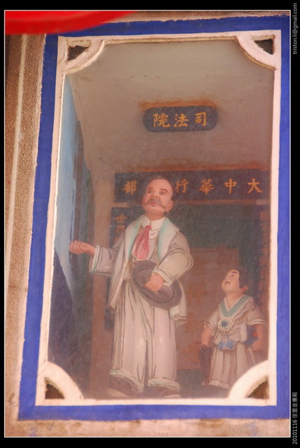 國父- 何金龍師傅於日治昭和三年整修金唐殿,時值民國十七年,在日本統治之下,大膽地將國父孫中山的剪黏塑像放置在廟前兩邊的牆頭墀上,意外的竟然沒有被日本人發現而得以保留至今