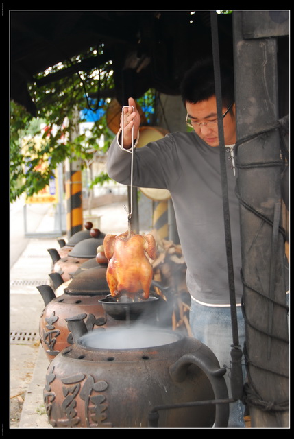 網路上找找.找著了一家較具特色的茶壺雞,它和別人不同的是,人家用的是甕來烤雞,它則是用特製的茶壺!還到了現場一看,還真是特製的茶壺!