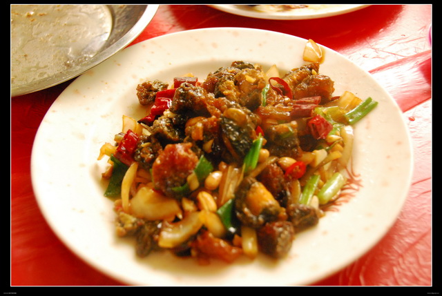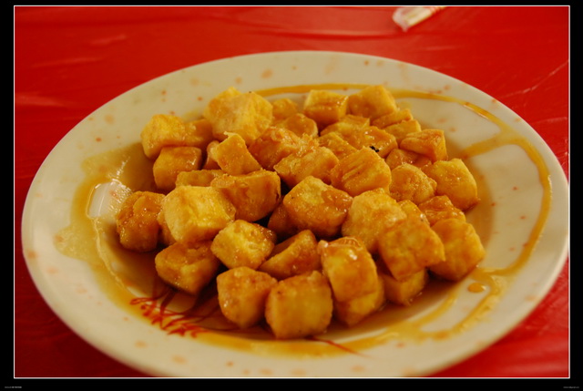 梅子豆腐先上場,炸的是不錯,皮酥內軟的,不過有點甜,不太合我的口,我雖然在台南住久了,但對甜味的口感還是不太能適應...