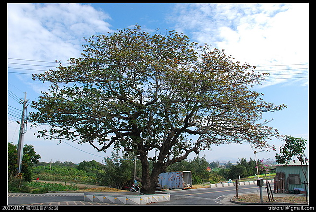 一進大門,就可以看到路口有一棵超大的欖仁樹,頗有一夫當關,萬夫莫敵的氣勢,配合這個公園原本是火炮基地,如果欖仁果掉下來,不就和密集火炮的射撀感覺相當,我覺得它應該被稱為"欖仁將軍",而不應該如圖示所說的"欖仁公"。