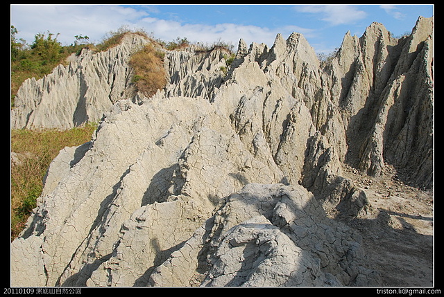 對面嶙峋的泥火山地形..不知是否就是神女峰..巫山神女化為十二峰嗎?不過後來的路我們決定折返,因為早就拉黃線禁止再進入。