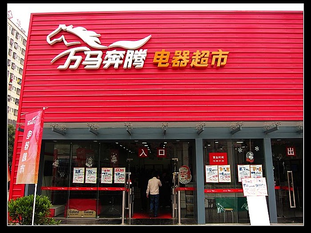 萬馬奔騰,是鴻海郭台銘董事長的零售通路商店計劃,這次趁著來到富士康深圳龍華廠區,也過來看看這家全國首家萬馬奔騰門市,這家店面雖採對外開放模式,但只有員工才能消費,主要功能是提供員工訓練服務。我看網站提到,萬馬奔騰的策略宗旨就是「萬馬奔騰、群英拓疆」,方向是「家電下鄉、人才回鄉」,時機是「內需勃興、通路為王」,程度是「整合上市、富士則康」。