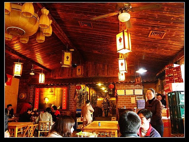 店名忘了,不過店裡擺設還不錯,頗有古意,牆上掛了毛主席的像,對聯是"翻身不忘共產黨,幸福多謝毛主席"!多有味啊!