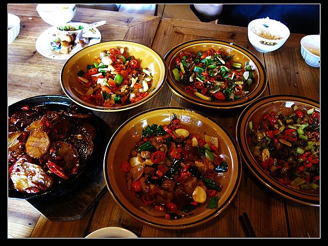 常來大陸以後,發現湖南菜在大陸其實還頗風行,不知是不是托了毛主席的福,不論在廈門,蘇州或上海,湖南菜餐廳隨處可見,深圳外地人很多,湖南菜當然也沒缺席!其實湖南在中國近代史可出盡了風頭,人才輩出,左宗棠,曾國藩,民國後的宋教仁,黃興,甚至大陸的毛澤東,劉少奇,台灣也有宋楚瑜,馬英九,湖南人可真是"橫行"兩岸三地了!人家說,富過三代才知吃穿,湖南出來這麼多名人,衍生出個"湘菜"也是理所當然。
