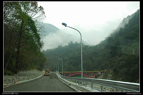 買了門票進來,遠方的拱橋還在興建,路旁的邊坡和加勁擋土牆也都整建中