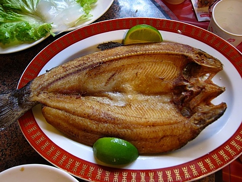 炸鱒魚,我猜是炸的,鱒魚的肉很嫩,魚刺卻都炸酥了,一拍完照,秒殺!