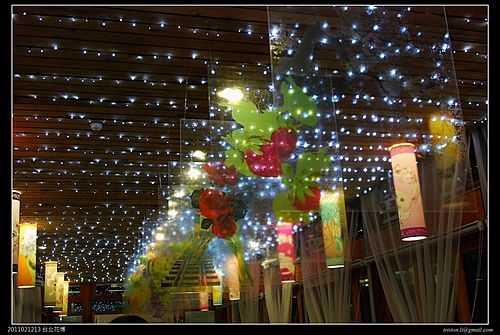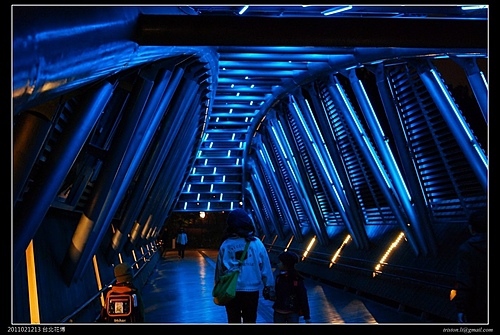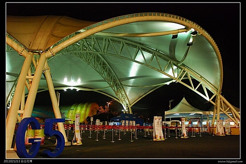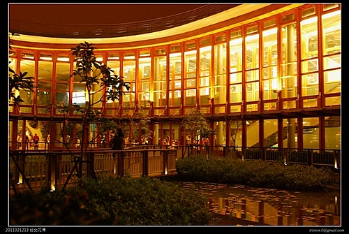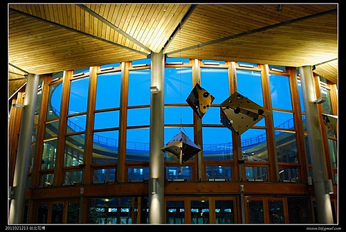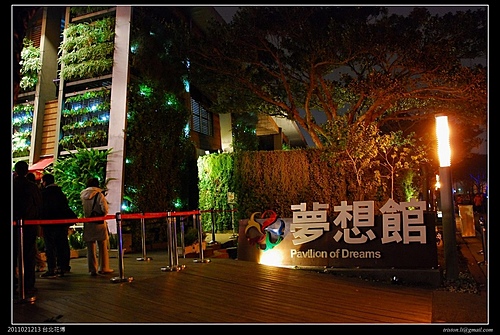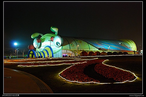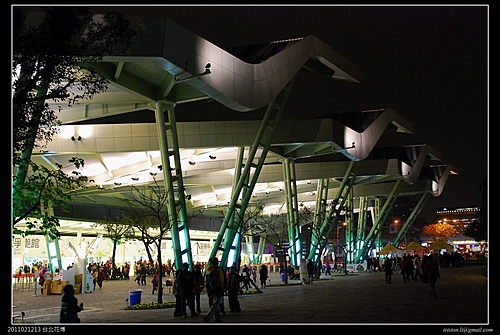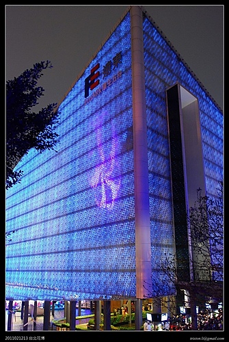 流行館夜景,這一整棟用寶特瓶蓋成的建築頗有特色及未來趨勢~因為明天還要來,就草草拍照後離開,當時一樓還有模特兒走秀哦!