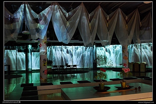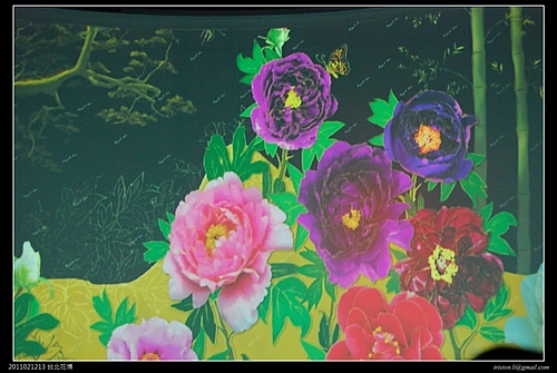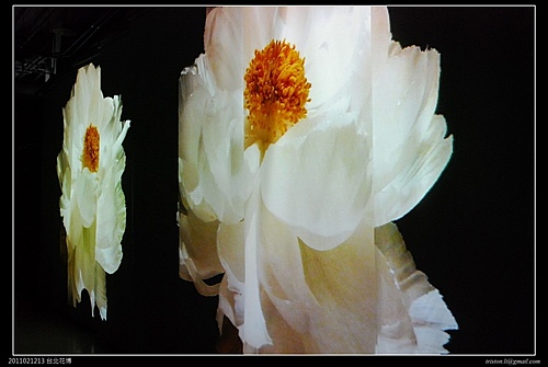 高解析投影機投影在布幕的牡丹,成像和呈色都很立體,走過這一片布幕,可以進入一個環形劇場