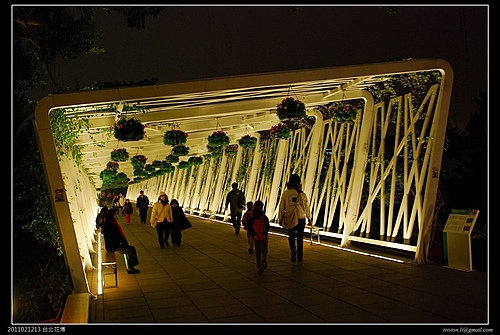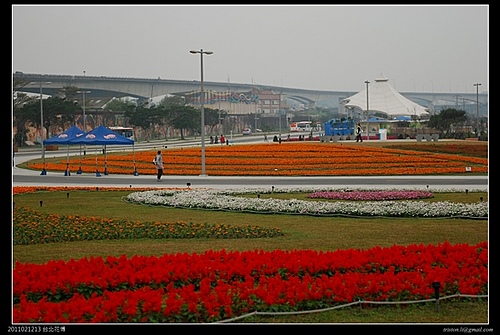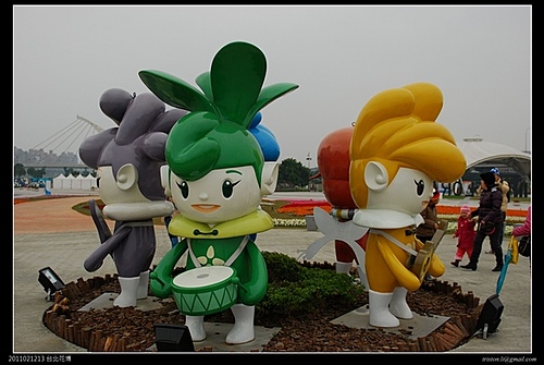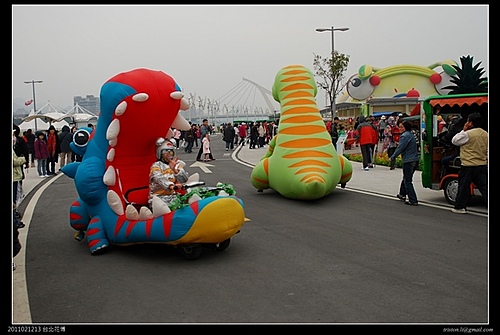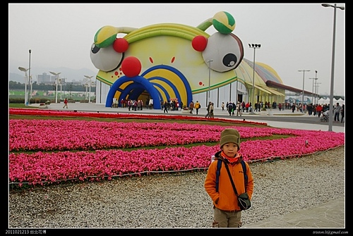 出發之前看了許多資料,媒體上也不斷報導花博的”夢想館”是不容錯過的重點,甚至網路上也有許多”花博預約卷搶票快速攻略”的文章,但是根據世博的經驗,這種”不經一番寒徹骨,焉得梅花撲鼻香”的搶票大戰,和我這種扶老攜幼的隊伍是無緣的!所以”夢想館”只能當夢想,行程自然忽略不計!今天的行程是下午進新生園區,先亂逛一下,然後轉往”大佳河濱園區”看三點出發的”毛毛蟲大遊行”,再踅回來吃”台灣美食”,排”未來館”及”天使生活館”,如果有時間或情況允許,可以排”夢想劇場”看一下幾米的動畫,再走"光之隧道"轉往圓山園區看一下”流行館"的夜景,最後坐接駁車去看”大佳河濱園區”的閉園秀,再由大佳出入口坐車回飯店!這是計畫!