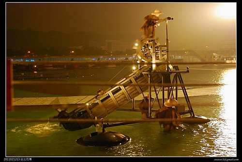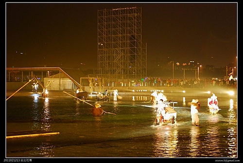 今天的閉園秀是”水的記憶”,一開始也不知道要表示什麼,看到最後懂了,是不同時代的臺灣人,生活和水的關係,由農業時代的親水,然後隨著工業進步,舖橋造路的離水,中小企業家帶著007皮箱隻身渡洋,台灣一路走來,其中還經驗了許多風風雨雨和動盪,棒球三冠王時代而至今的種種!不過後來的結束,我就看不懂了!