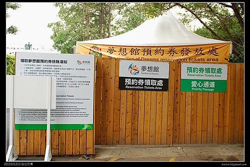 因為己經是下午了,售票口沒什麼人,我的票是在ibon買的,也不用去排隊,不過隔天的志工還告訴我一個秘訣,要我拿ibon票去換入場的電子卡,因為憑花博的電子卡可以在花博展期,在星巴克買一送一<園區除外> ,五星級飯店打6折,還有更多的一些特約商店折扣,其實真正對我而言,是花博售票口的入場電子卡比較漂亮,所以當然就換囉!