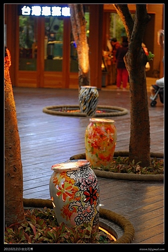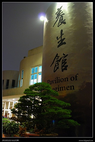 走經養生館-晚上也不用排隊,當然就進去”累積一下館數”囉!不過裡面的展覽內容其實很豐富也很有意境,因為它提供了很多數十年的還有一些五葉松和紫檀盆景,但是展場禁止攝影,門外有一棵550年的木麻黃也很可觀,高約2米