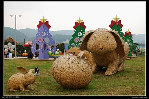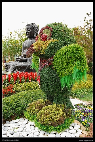 入場就可以看到的”鯨魚綠雕”,看起來應該是藍鯨吧!有兩隻大小相隨,栩栩如生地,給入園的遊客有一個強烈的意象!