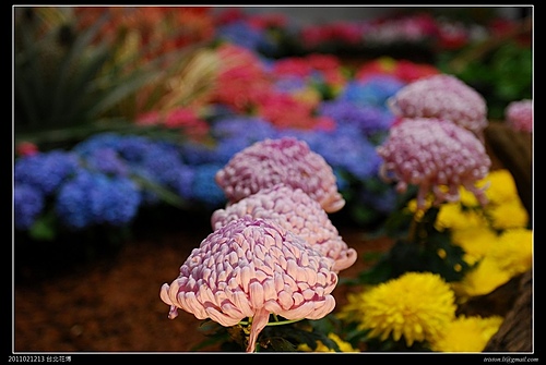 前方是一大片”地景花海區”,真真"數大便是美"啊..各色各樣花交織成不同顏色的視覺景觀!這種景色隨手捻來就可以拍出不少好照片囉!