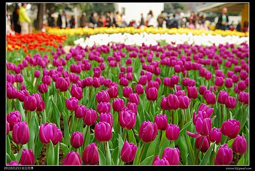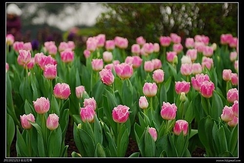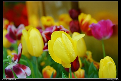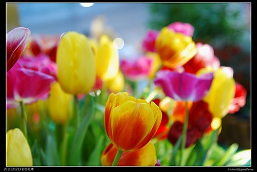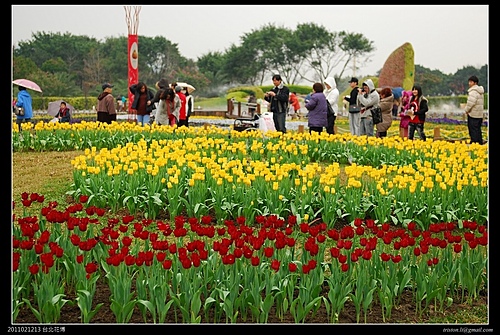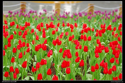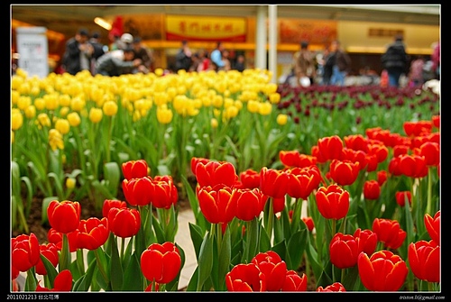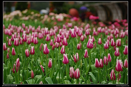 從新生園區入園,今天走的算是園區中軸線,雖然打算要走”光之隧道”直奔”美術園區”,卻先看到了美麗的鬱金香,自然就義不容辭的拍幾張照片.色彩繽紛的鬱金香拍起來很上色,飽和度也高,配上新買”高貴”的Nikkor 24-70mm F2.8G的鏡頭...對這些美麗的花朵應該不算失禮吧!