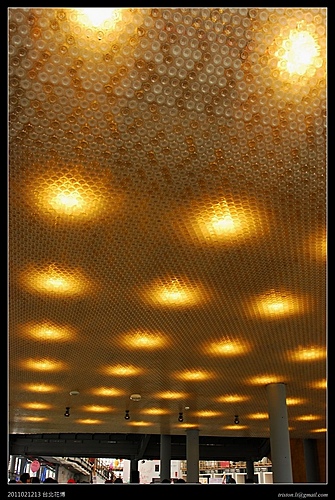二樓的「觀景平台」,在這裡,可以俯瞰整個展館,還有屋頂的寶特磚雲朵吊燈,吊燈內使用LED,是由屋頂的太陽能板發電產生的.