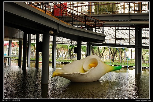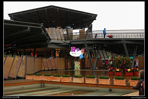 走人行天橋過來美術園區,一下天橋就可以看到專賣紀念品的”風味館”,由某一角度看風味館的水池倒影!