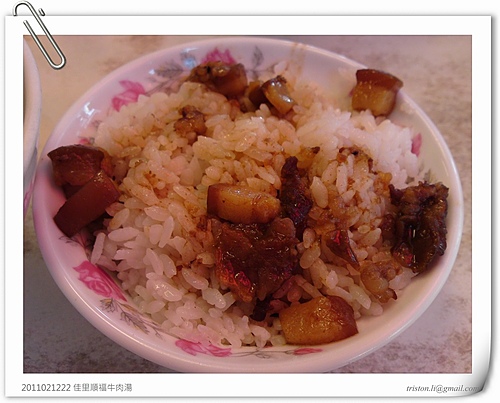 肉燥飯,飯本身ok..但是肉燥少了些,肉燥也沒有滷出油汁來,缺了股”油香”味,而且不能自由的吃(雖然我們也只吃一碗).感覺不太”阿莎力”!這一點阿安牛肉湯就大勝了..