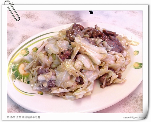 先來一盤高麗菜炒牛肉,口味和阿安牛肉湯相差不遠,不過順福牛肉湯的牛肉片的較大塊,咬起來較有咬嚼的口感!