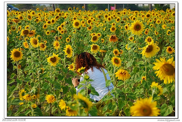 昨天經過台南市生產路附近台糖的農地,發現這裡的向日葵開了,今天下午趁空過來賞花!這一大塊地,每年元宵過後,就是向日葵的季節,不過台南市都市計劃中,未來的台南副都心座落在這裡,附近不但是新台南火車站的計劃區,也規劃了歌劇院和一些商業用地,再過幾年,這片都市中的花田就要bye bye囉!有花堪拍直須拍,就努力為短命的花兒留下最美麗的影像吧....