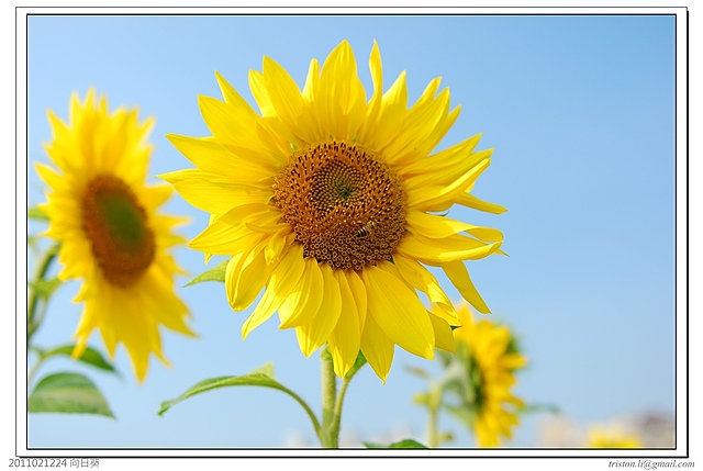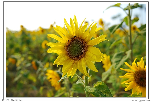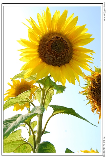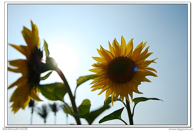 雖然大部份的向日葵都乖乖地朝著太陽的方向抬頭,但還是有些”叛逆”的花朵仍是硬頸的死不轉頭呢!!