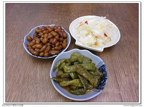 菜單,反正就能吃想吃的都勾了,先來三盤小菜,除了花生,高麗菜,還有醃青辣椒.....