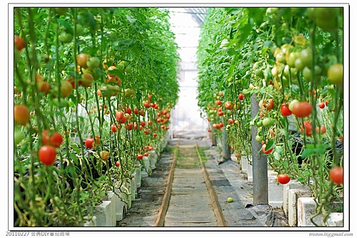 我們就直接殺進去種植區了,這裡是可以觀光採果的,但是不行邊採邊吃!而且種植區是全園禁烟的,如果當年的高中生物沒唸錯且未忘光的話,應該是因為蕃茄和煙草同屬茄科植物,好像有共通的RNA病毒哦..所以還是小心一點吧!!不然全園蕃茄都得了流感就不妙了....