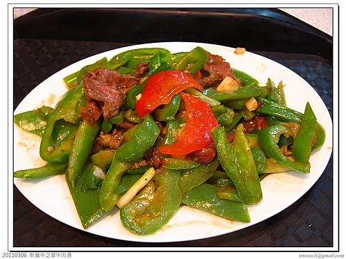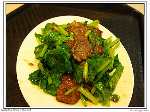 點了芥藍炒牛肉和青椒炒牛肉,芥藍菜吃起來有一股甜味,好像是刻意加了一點糖,怪怪的..