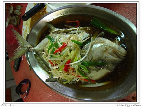 這裡最有名的是小隻的野生龍蝦,一斤1000元(約三隻)....清煮龍蝦湯或龍蝦生魚片...這一盆有六隻