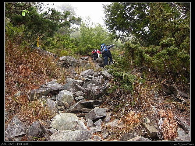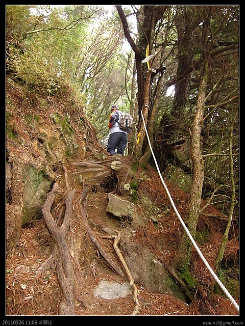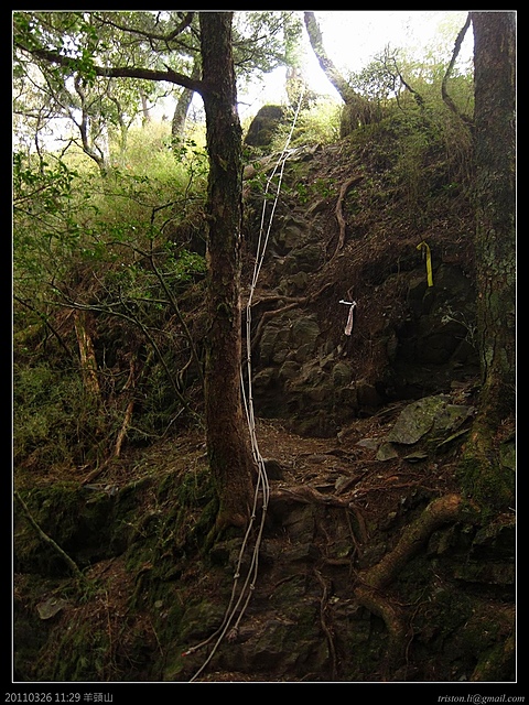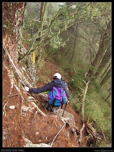 11:29 再來一段高度約5米的攀岩.爬羊頭山,棉紗手套和登山杖是絕不可少的啦.