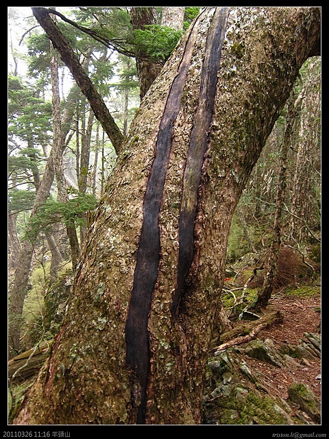 叉路口的樹上有被雷劈到的痕跡..由樹頂入地的二道焦痕...兇惡
