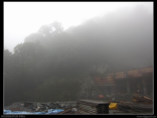昨晚一夜跋涉,下了班,七點多由台南出發,到大禹嶺都已經半夜一點了,早上五點半起床,看來天氣不太好,起了霧,氣溫大約只有4度!今天濕氣重,但是希望今天不會下雪!如果起霧再加下雨的話,原本的這座羊頭山就已經夠嗆了,再下雪,鐵定立刻就得收兵回家!