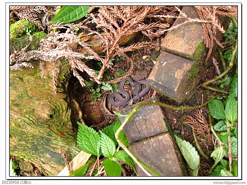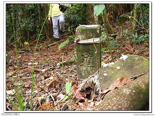 吃飽飯,喝了同行伙伴泡的茶和咖啡,該回程上路了,今天的天氣真好,陽光不太強,風由林中吹來,涼啊!!終於知道為何這裡叫"凸龜山"了,”凸歸粒(整座)山”啦!