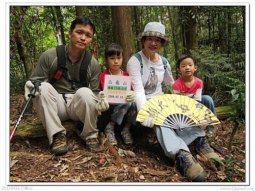回到南十字峰,領隊終於把凸龜山的牌子拿出來了,這時我們才發現原來這裡是”凸龜山”,他大概怕我們太早知道會提前心態上放棄吧!拍一張吧..標高1746米,一片原始林中無展望!