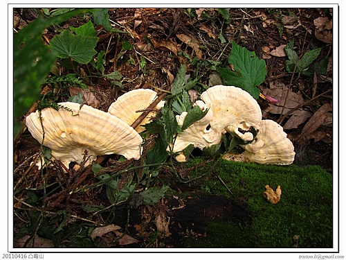 下山囉,倒伏樹幹上長出的蕈類,向我們揮手說bye bye....