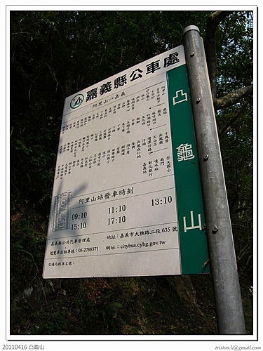 今天要爬的山叫"凸龜山",很怪的名字,入口大約在阿里山公路台18線72K左右,阿里山公路這幾年坍方不斷,很多公路里程都變了好幾番!不過後來下山時發現”凸龜山”也是阿里山公路上一個客運的停靠站。步道的入口在公路旁駁坎上,大約在站牌再往公路上去約20米,說實在的,雖然來來往往阿里山公路這麼多次,不過可從來沒注意到這個步道入口..