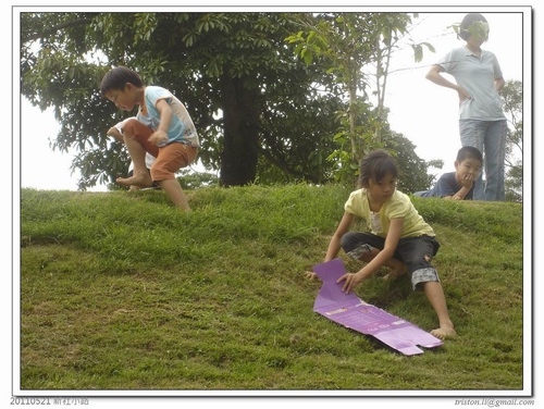 四點多了,太陽稍稍落下,氣溫也稍降,雲層有點厚,或許會下雨吧!小朋友開始往滑草區前進,小路營區的確很用心經營,不論營區,或是滑草區的草皮都整理培育的很棒!