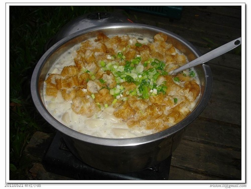 今天的湯是由籃董負責的”味噌湯”除了油條豆腐蔥花外,還加入了特殊的魚片,料多味美...