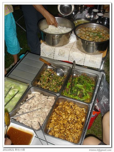 今天來的特早,搭好了帳篷,才到中飯時間,今天菜色是麻醬關廟麵,用素樸的美食簡單果腹,重點在晚餐囉!