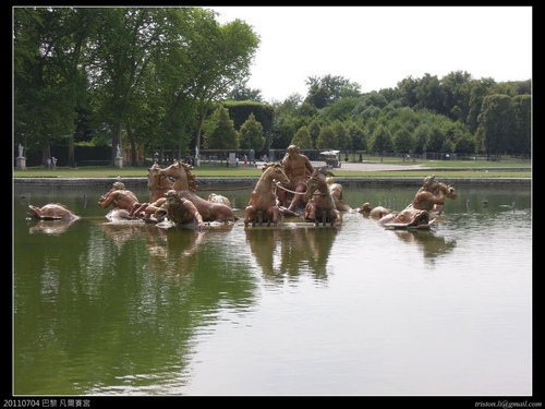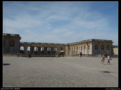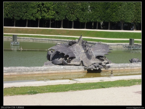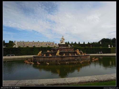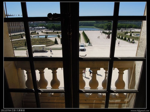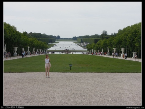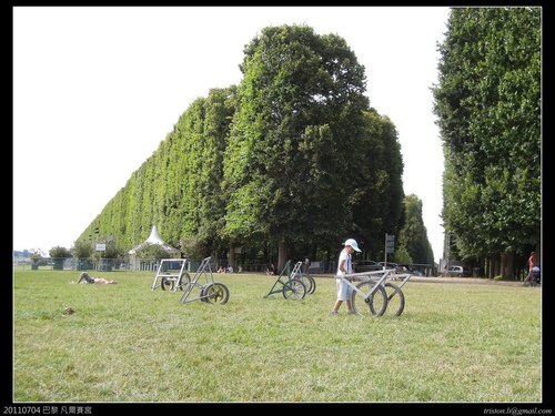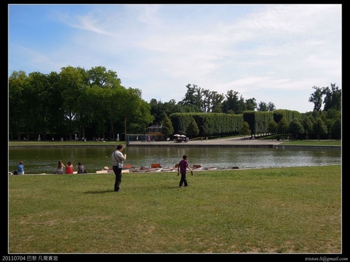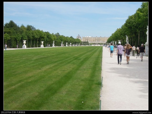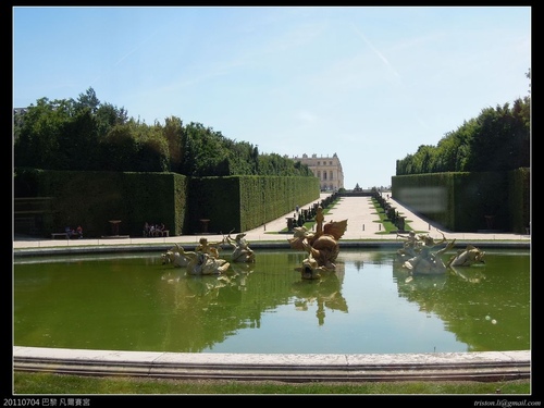 凡爾賽宮殿後側及花園呈現極為整齊的幾何圖形,如果說英國和法國有什麼明顯的文化差異,我想英國的聖詹姆士公園、海得公園的參天大樹和法國香榭麗舍大道、凡爾賽宮的修剪整齊的樹木圍籬或許也可以看出在不同環境下所孕育出一種著重實用和另一種重視派頭的文化差別了!