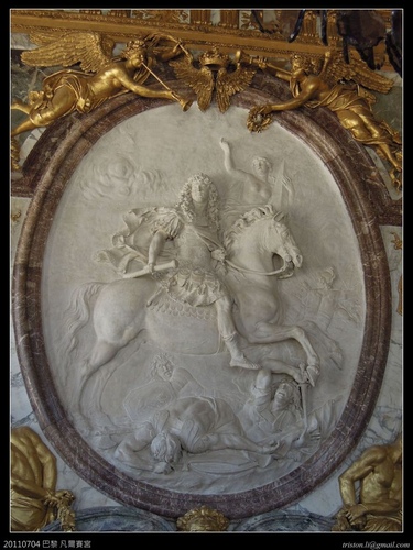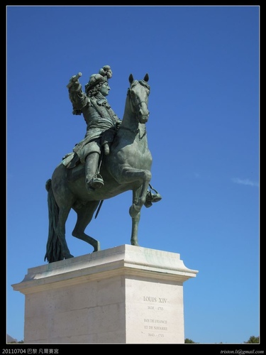 凡爾賽宮入口立了一尊路易十四的青銅像,他在位的時候是法國最輝煌的時代,年代和我們的康熙皇帝差不多,不過感覺做為和乾隆差不多,也都是在他們的手中,把國家由興盛轉向還衰落,結果西方的那個自號為“太陽王”,東方那個自號“十全老人”
