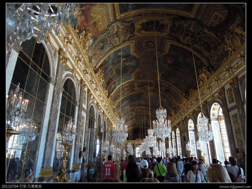 凡爾賽宮中,最有名也最引人著目的應該就是二樓這個向著花園的部份的鏡廳了,西元1871年,普法戰爭結束,普魯士國王威廉一世在鐵血宰相俾斯麥的輔佐下,在這裡宣布德意志帝國的成立,並就任首任皇帝,德法就在這裡簽訂凡爾賽和約,後來並導致法國“巴黎公社”的短期革命,這短短的“巴黎公社”甚至影響了後來的列寧和毛澤東的共產思潮!可是俾斯麥後在的外交上的折衝樽俎,在他身後終究無法平衡歐洲的局勢而又引起第一次世界大戰,德國戰敗後又簽訂了第二個對德國不利的凡爾賽條約,建立威瑪共和,然後德國受辱,希特勒上台後又引起了第二次世界大戰,所以可以說這個奢華的鏡廳是世界近代史乃至現代史的重大舞台!