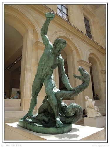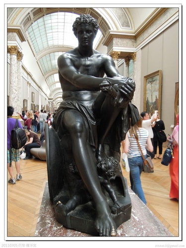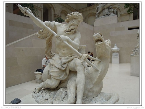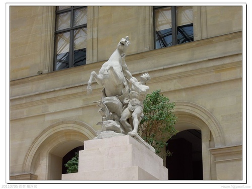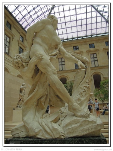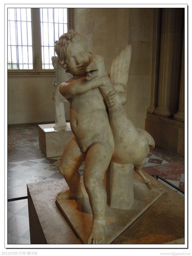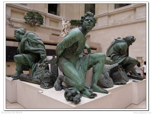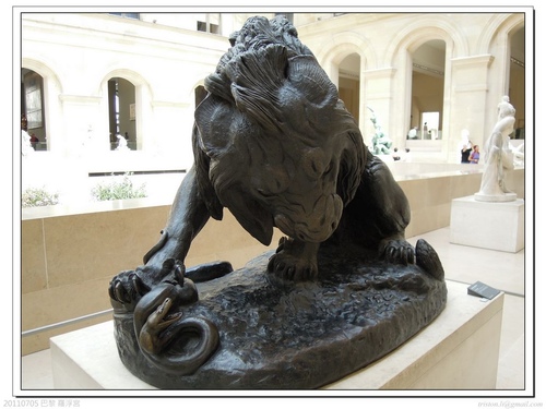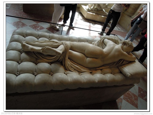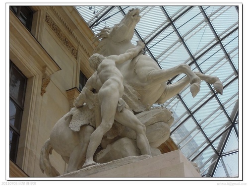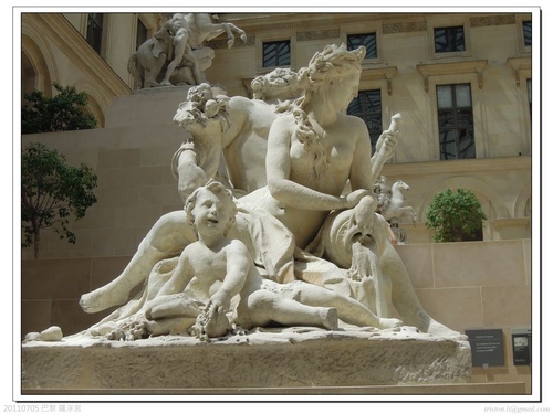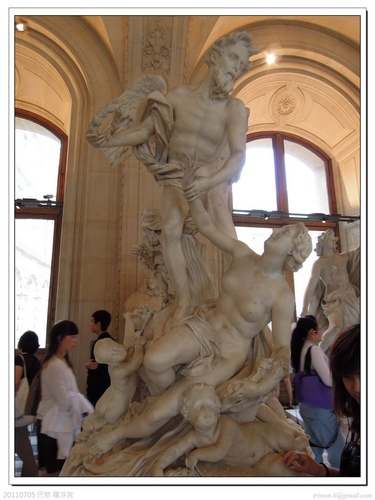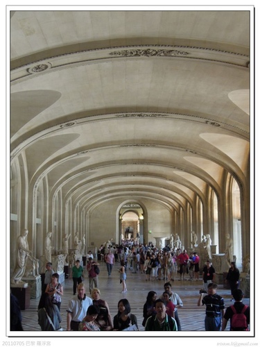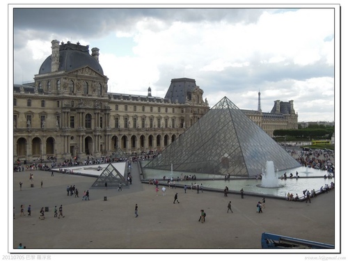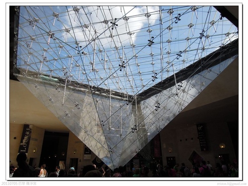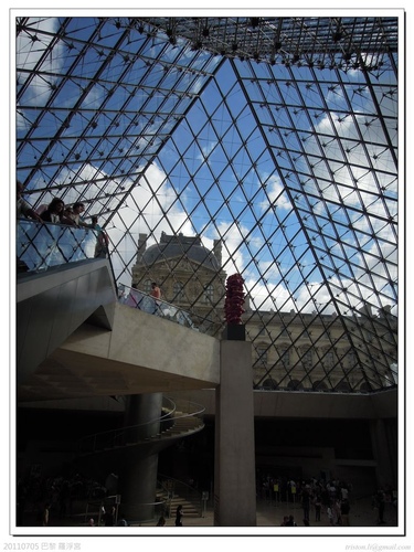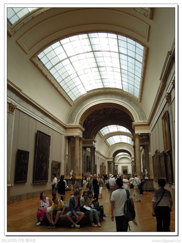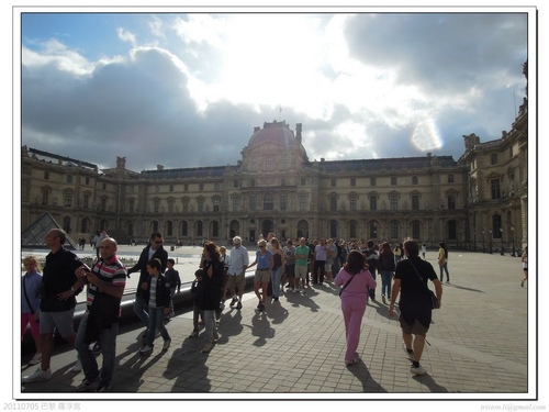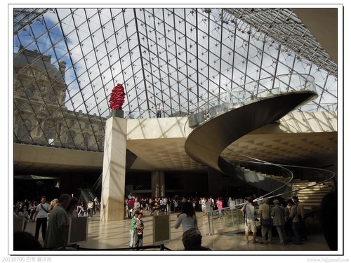 還是得排隊,不過大概排了約廿多鐘就進了安檢,又待排隊去買票,羅浮宮門票不含局部的特展是10歐元,其實還好!至少和有些教堂動輒十幾歐元英磅的划算多了!不過大部份人都以為歐美人士較守規矩,會乖乖排隊,我看也不見得,我前面就有人插隊,還被我喊了兩下!反倒這次在巴黎看到大陸團的品質還不錯,雖然人多勢眾、財大氣粗免不了,但基本上還好,導遊講解他們也頗仔細在聽,而且大陸導遊的專業度就先前去大陸和這次的經驗看來,台灣的導遊真要好好學習了,我在凡爾賽宮和羅浮宮就跟了好幾個大陸團,聽他們導遊說明!